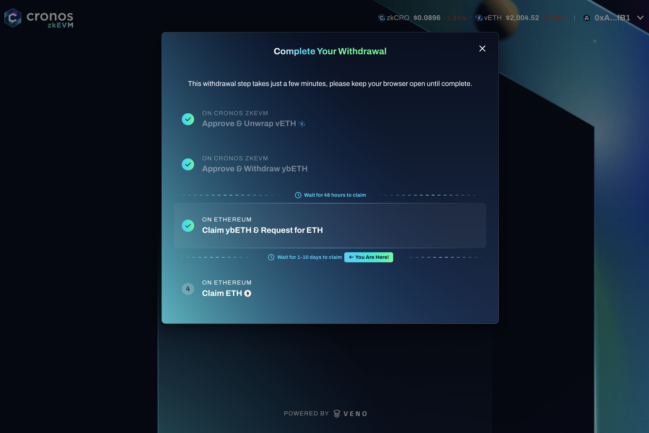 #### Bridging zkCRO from Cronos zkEVM to Cronos EVM